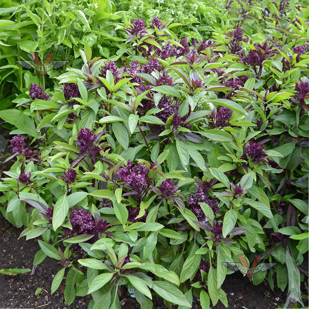 Thai Basil ‘Siam Queen’ is a lovely basil that produces dark purple flowers on sturdy plants. The leaves are extra large and have a very strong, clove-like scent. Siam Queen was a AAS winner in 1997. Basil is a tender annual that comes from the Old World tropics. It prefers sunny locations and rich soil. Appreciates afternoon shade in hot, southern climates. Can be grown in containers indoors as well as outside. Culinary uses: Mediterranean, Thai and southeastern Asian cuisine; curries, fish and beef dishes.