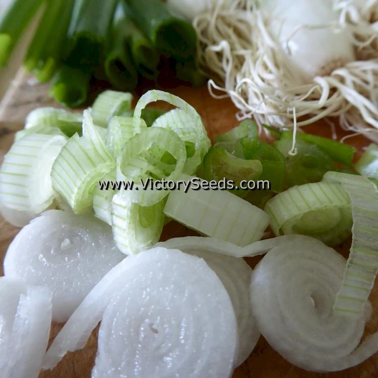 95 days — A good selection as a fresh market bunching variety of onion. The white stalks of ‘Tokyo Long White Bunching’ onions are upright, uniform and are slightly pungent in taste. They reportedly show a strong tolerance to Pink Root Rot (PRR) and smut. Can be used for fresh eating as a garnish or on a veggie platter, or used in any recipe calling for green onions.