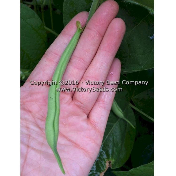 50 days — Also marketed by vendors as ‘Top Crop’, it is a very disease resistant variety with strong upright plants that reach twenty-four inches tall. Its pods are six to seven inches long, round and stringless. The crops are heavy with pickings concentrated. The seeds are dark brown speckled with tan. Great fresh, canned or frozen.