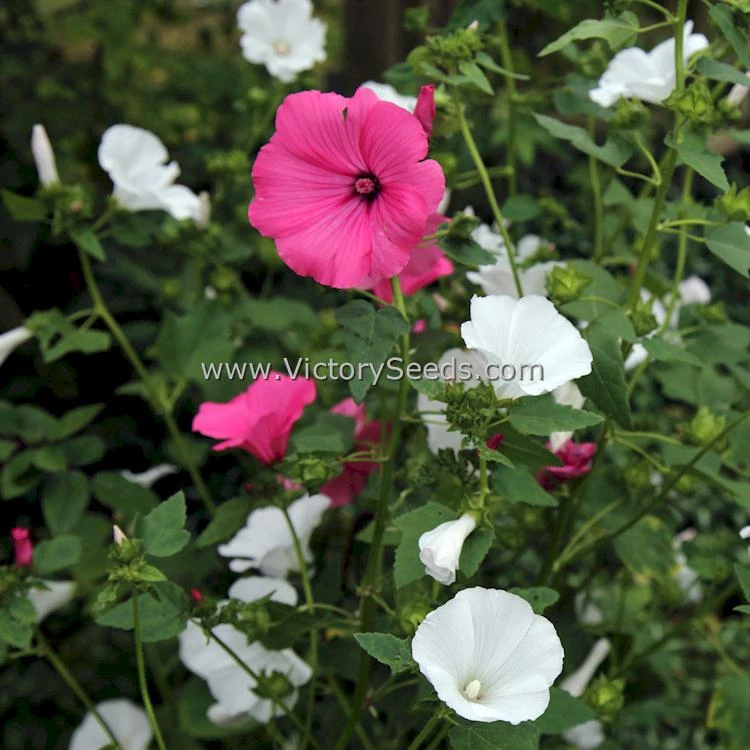 The plants prefer sunny locations with moderate to moist soil. They will reach twenty-four to forty-eight inches tall, developing shallow, funnel-shaped flowers that range from white to pink in color. Many flowers will exhibit maroon colored centers and petal veins. Each packet contains one gram, which is approximately 150 seeds.