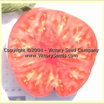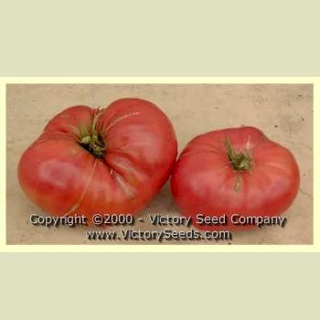 85 days, indeterminate — This is a family heirloom that helped to start the Victory Seed Company. The potato leaf plants produce huge (up to two pounds), dark pink colored fruit that are meaty, yet juicy, and with a great flavor. An excellent slicing variety.