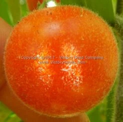 The small, one-inch cherry tomatoes are bright red in color, globe-shaped, and have an excellent, sweet flavor. As the fruit are developing, their skin exhibits a pubescence (fuzziness) similar to “peach-type” varieties, but it diminishes as they mature.