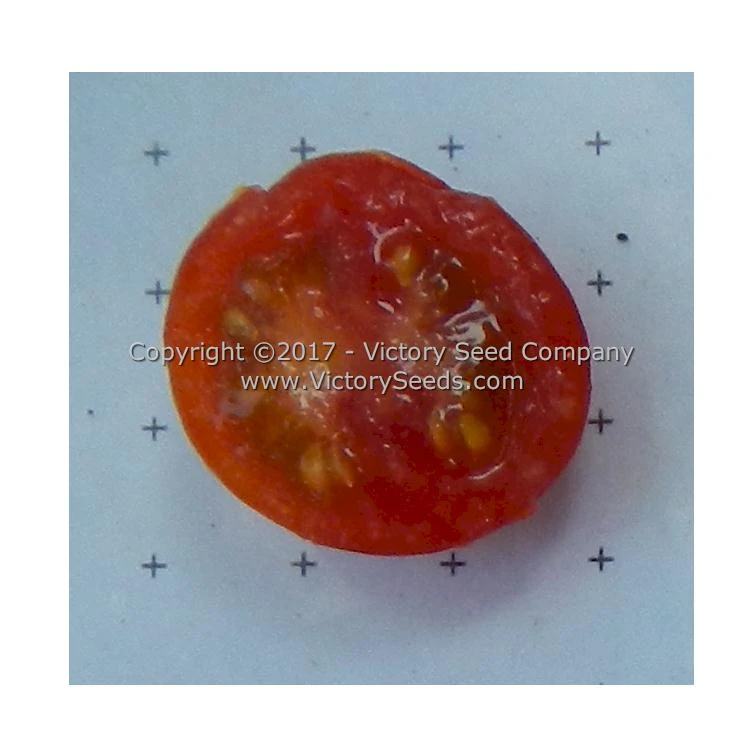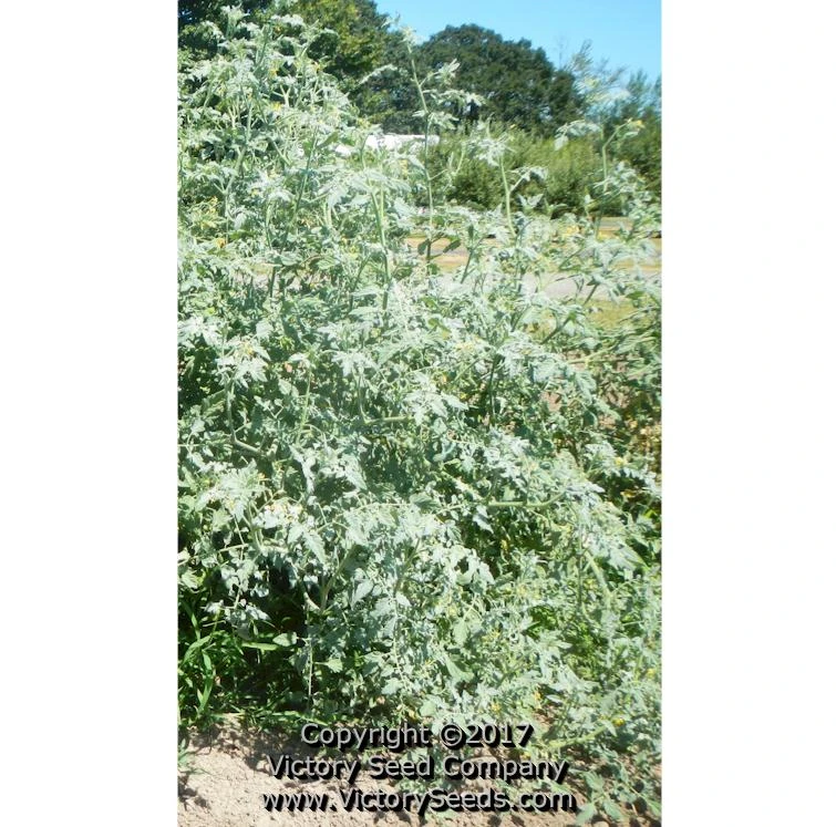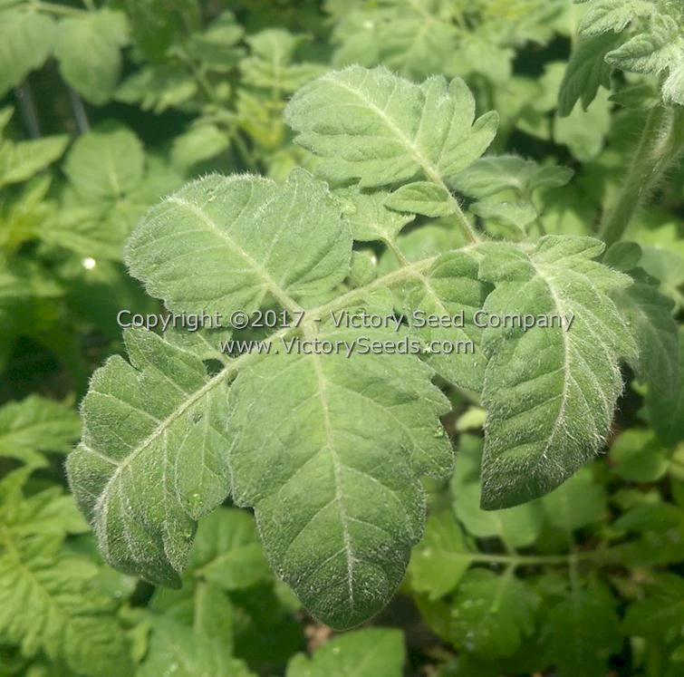 80 days, indeterminate — The vigorous plants of ‘Velvet Red’ are very productive and have interesting, bluish-green, some say silvery-gray, colored, regular leaf foliage. Although we have not personally experienced it, some report that “non-silvery” plants occur on occasion.