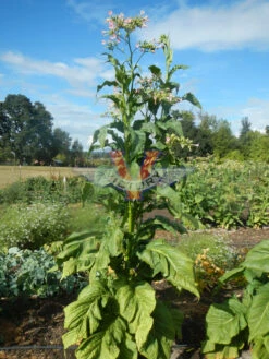 ‘Virginia 12’ is a cigar-filler type tobacco. Its plants grows to about forty-one inches tall when topped, and over six feet when allowed to flower. Its leaves have undulating margins, puckered surfaces, and are inversely ovate attaching to the plant stalks at the narrower end. Typical leaves average fourteen inches wide by twenty-seven inches long.