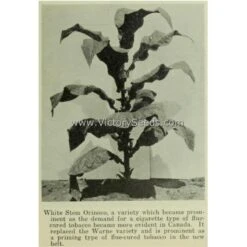 The plants of ‘White Stem Orinoco’ grow to about fifty inches tall when topped, or can reach seven feet when allowed to develop flower heads. Its leaves are large, averaging twelve inches wide by twenty-four inches long. The variety is adapted to the less productive and sandy loam soils of the Middle and Old Belts of North Carolina and Virginia, but not to the heavy and more fertile soils.[1]