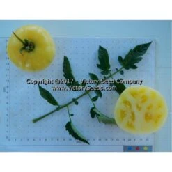90 days, indeterminate — ‘White Tomesol’ plants produce fruit that average eight to ten ounces each, but can reach up to one pound. They are oblate in shape, pale yellow in color and often display a delicate pink blush on the blossom end. The fruit that peek out from under their regular leaf foliage, and therefore receive more sunlight will darken in color. Their flavor is rich and sweet, yet mild, as hinted by its color. An excellent slicing tomato.