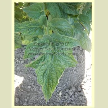 82 days, dwarf — The vigorous, rugose potato leaf plants of ‘Willa’s Cariboo Rose’ produce three to ten ounce, oblate-shaped fruit that are a beautiful, deep pink color. They are very juicy and their thin skins do contribute to some late season splitting if your area receives excessive fall rains like we often get here on our farm.